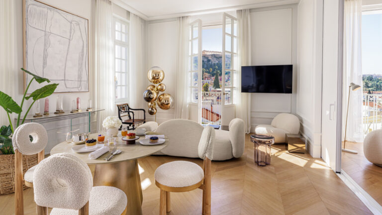 A private, personal and ultra-luxurious cocoon in the very heart of Athens city, backdropped by mesmerising Acropolis views from every corner and seat. Floor to ceiling windows offer unblocked views to one of the ancient world’s seven wonders. The Acropolis Pied-a-Terre creates the ideal circumstances for dreamlike holidays for 2 adults or a family with 1 child, offering a luxurious and spacious master bedroom and a magnificent sitting & dining room, which can sleep up to 1 kid, each space of course with its en-suite bathroom, and crowned by top-notch services and amenities.