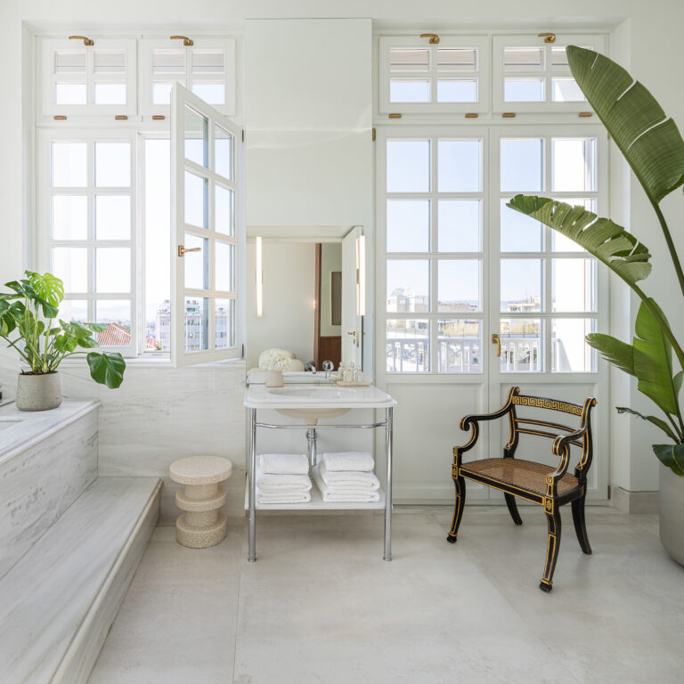 Spacious bedrooms with floor-to-ceiling windows with direct Acropolis views are destined to become your personal sanctuary opening onto the timeless beauty of the classical world. Luxurious textiles, precious decorative objects, contemporary artworks, custom-made beds and wardrobes along with a sophisticated personal bar with a tea and coffee station, dreamlike sleeping products and comfy furnishings come together to create this unique suite collection with the most stunning bathrooms you have ever come across with a killer Acropolis backdrop. Acropolis Luxury Junior Suites are located exclusively on the third and fourth floors of the hotel.