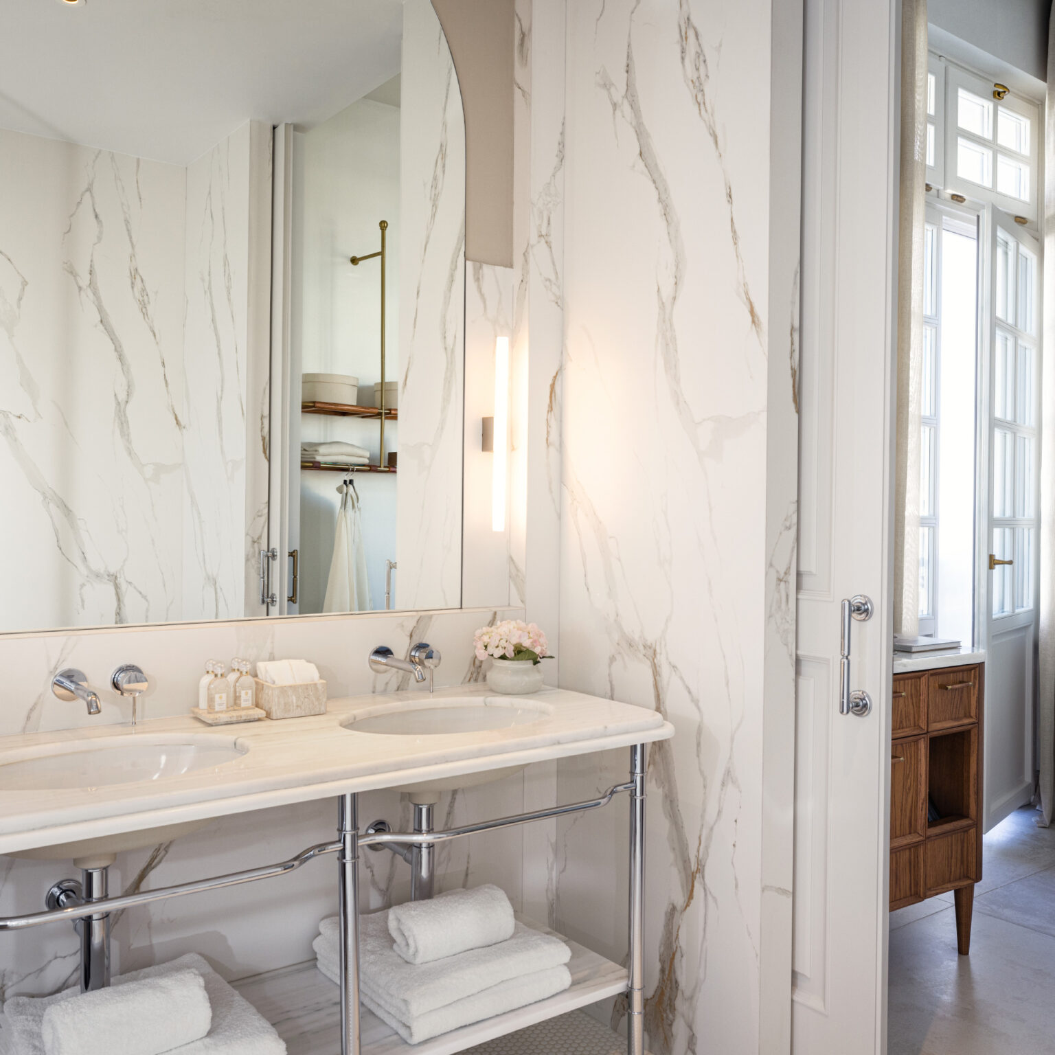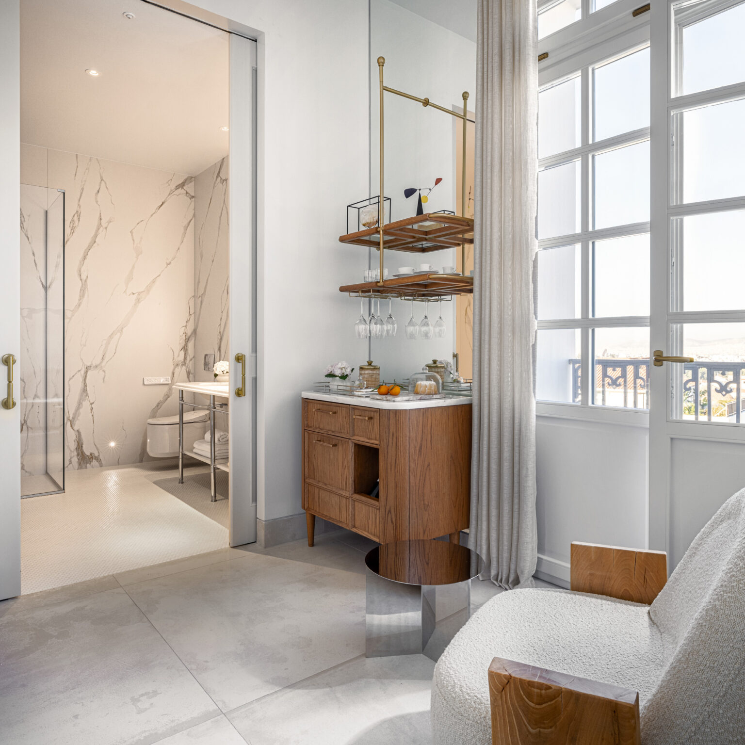 A truly unique suite collection with generous spaces, cosy sitting corners and a soothing yet contemporary-chic ambiance. Beautiful views backdrop the whole accommodation experience, while some suites overlook Hadrian’s Library, the Ancient Agora of Athens, as well as Lycabettus Hill. Soothing colour tones and special decorative objects characterise this unique Suite, which features a beautiful sitting area and a custom-made personal bar. A spacious marble bathroom elevates the in-room wellness experience to a whole new level, while the walk-in rain-shower maximises comfort. Luxury Junior Suites are located on the third and fourth floors of the hotel.