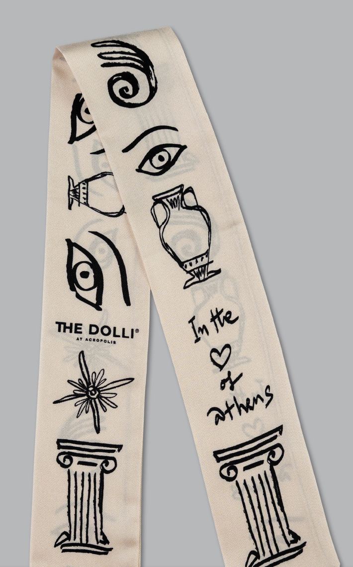 THE DOLLI Bag is here. An homage to Athens, this collaboration with renowned designer Marina Raphael artfully distills the interplay between the ceaseless energy of the ancient city and the pulse of modern life into wearable form.